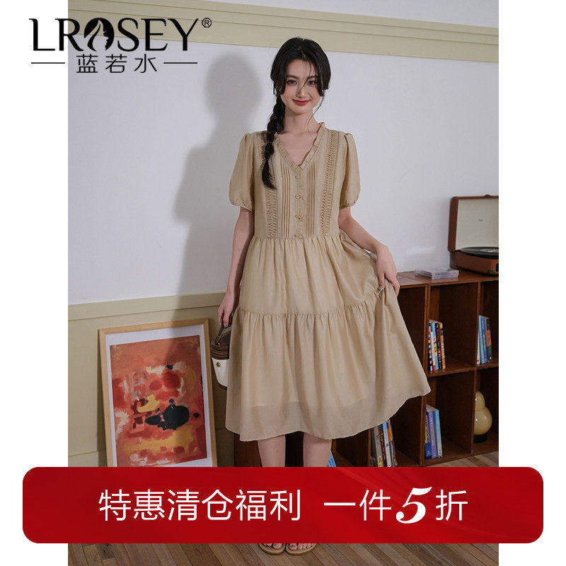 蓝若水大码女装V领木耳边连衣裙2026夏装新款胖MM别致小个子中裙