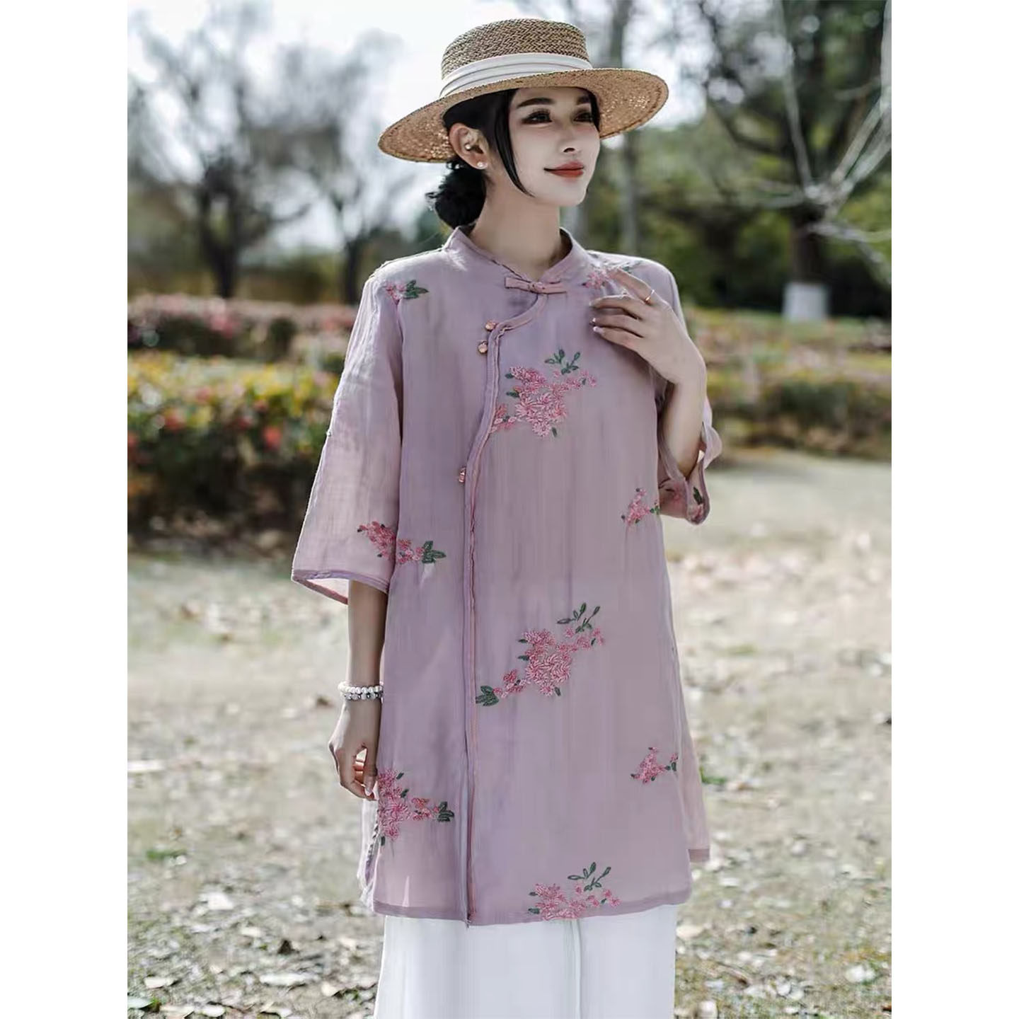 外贸原单中式国风斜襟印花棉麻连衣裙女夏季减龄气质改良旗袍中裙
