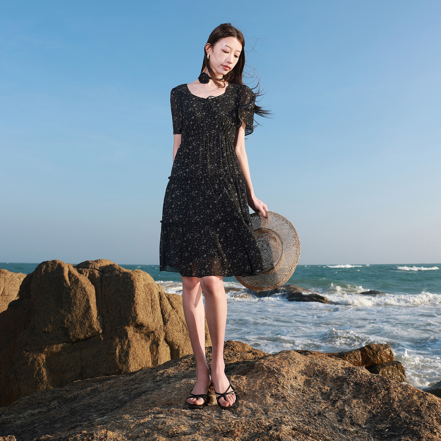 素木休闲假两件黑色连衣裙女2025年夏季新款宽松中裙欧货大码女装