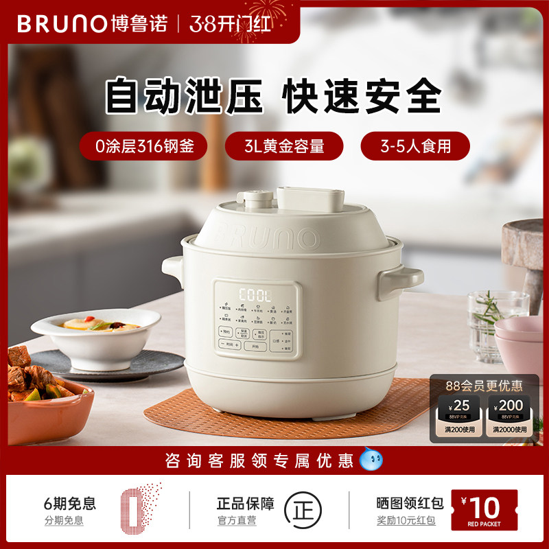 BRUNO电压力锅家用3L电高压锅小2人电饭煲高压锅小型电饭锅电压锅