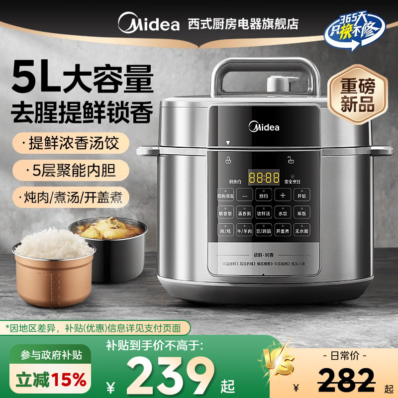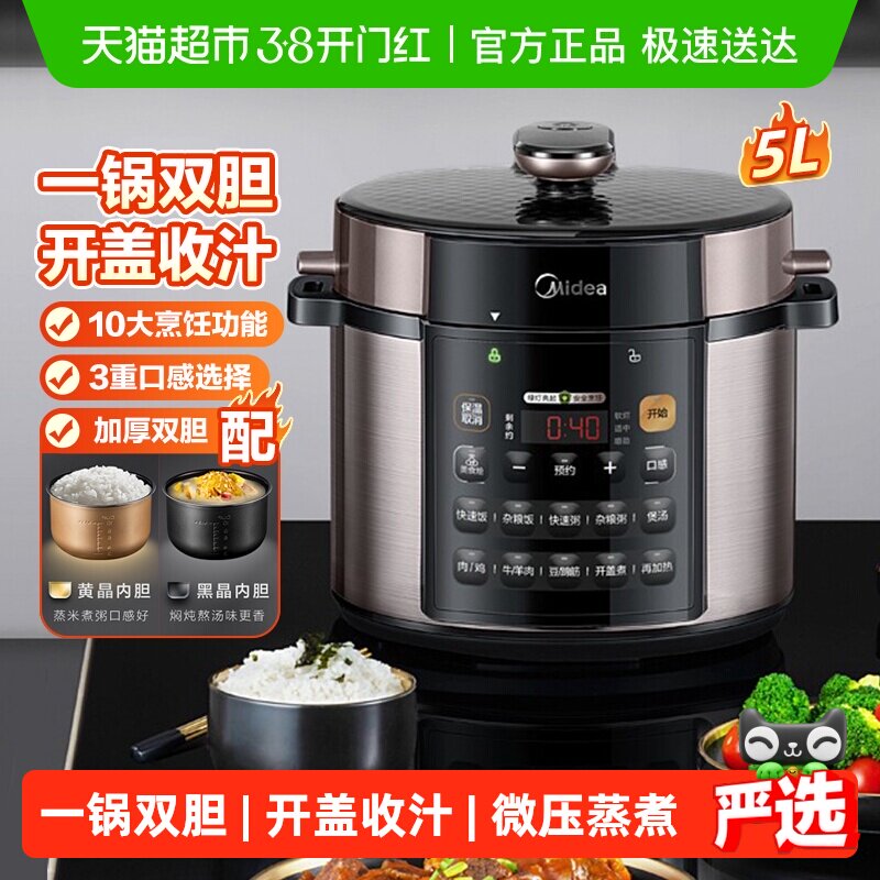 美的电压力锅家用双胆高压锅5升大容量多功能饭煲全自动官方正品