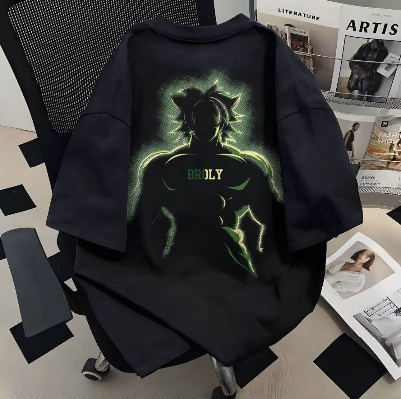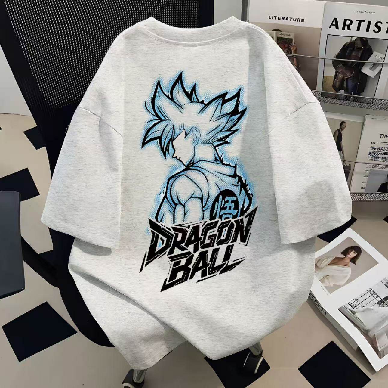 日系动漫七龙珠人物印花短袖T恤男女同款宽松落肩袖纯棉潮牌上衣