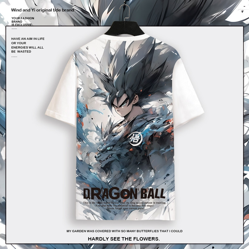 日系潮牌短袖T恤男七龙珠超级赛亚人印花孙悟空痛衣大码薄款半袖