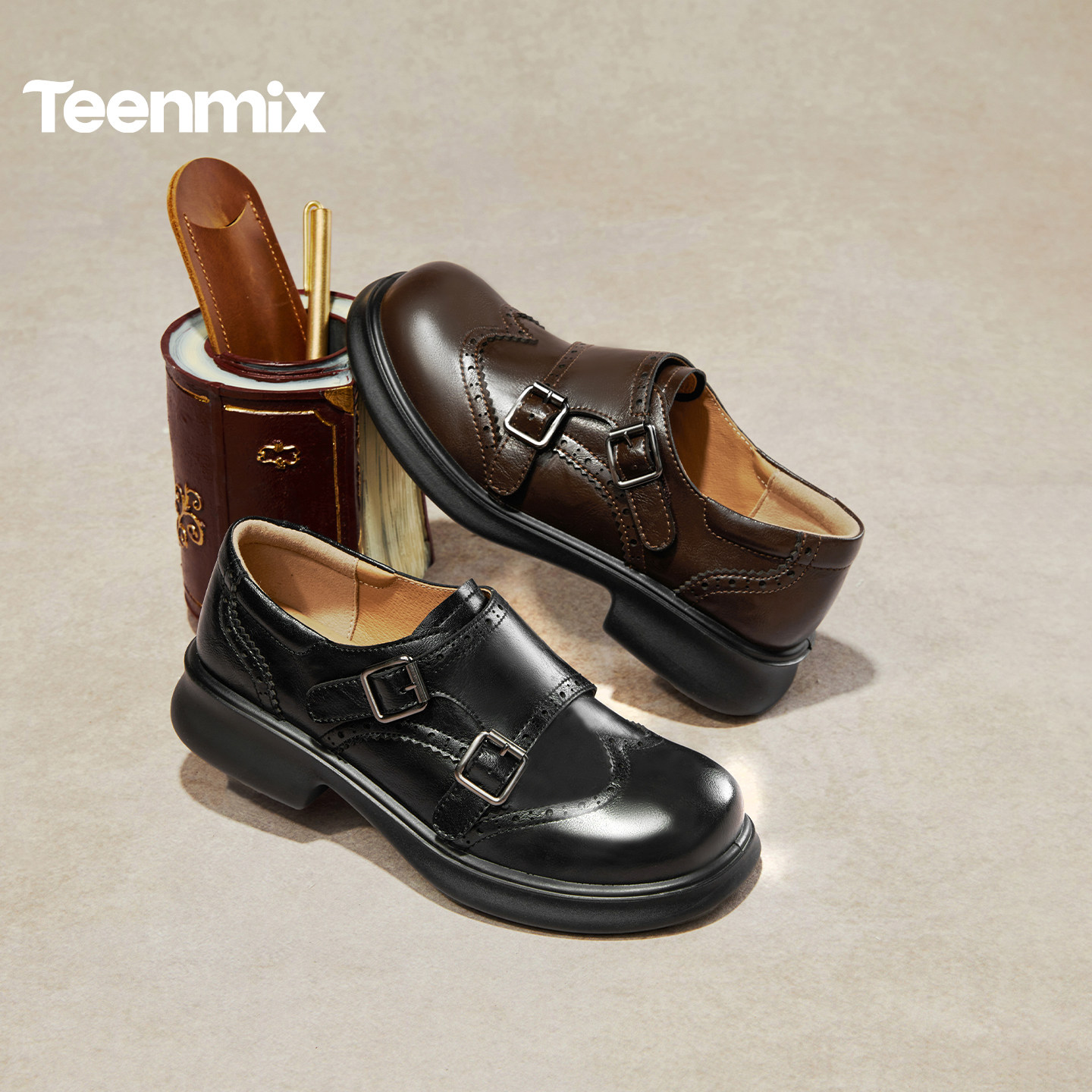 百思图26春新款英伦风布洛克牛津乐福鞋皮鞋孟克鞋女单鞋D3836AM6