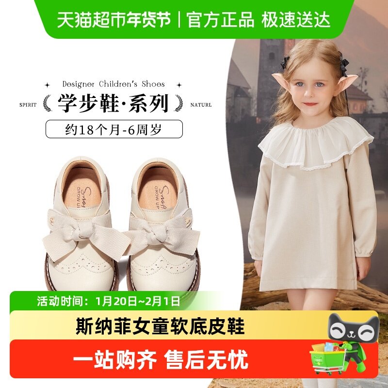 斯纳菲女童皮鞋小女孩公主鞋春秋新款儿童布洛克白色软底宝宝单鞋