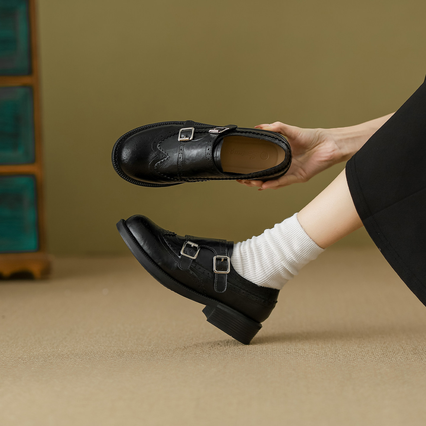 牛皮雕花布洛克鞋女2025秋冬新款英伦风牛津鞋女复古小皮鞋乐福鞋