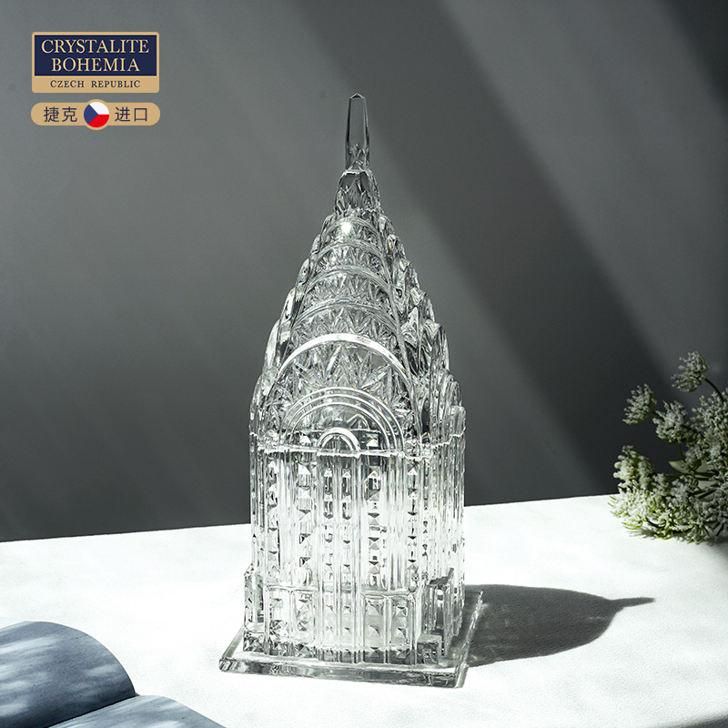 捷克进口 Bohemnia水晶玻璃糖缸 北欧轻奢高档简约客厅铁塔摆件