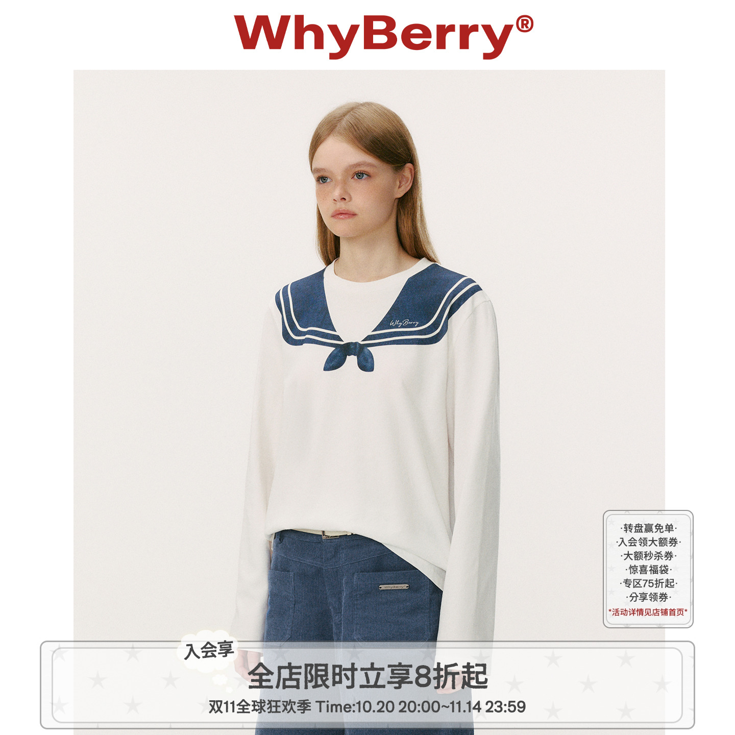 WhyBerry 25AW“航海物语”原创海军领印花T恤少女风秋季长袖上衣