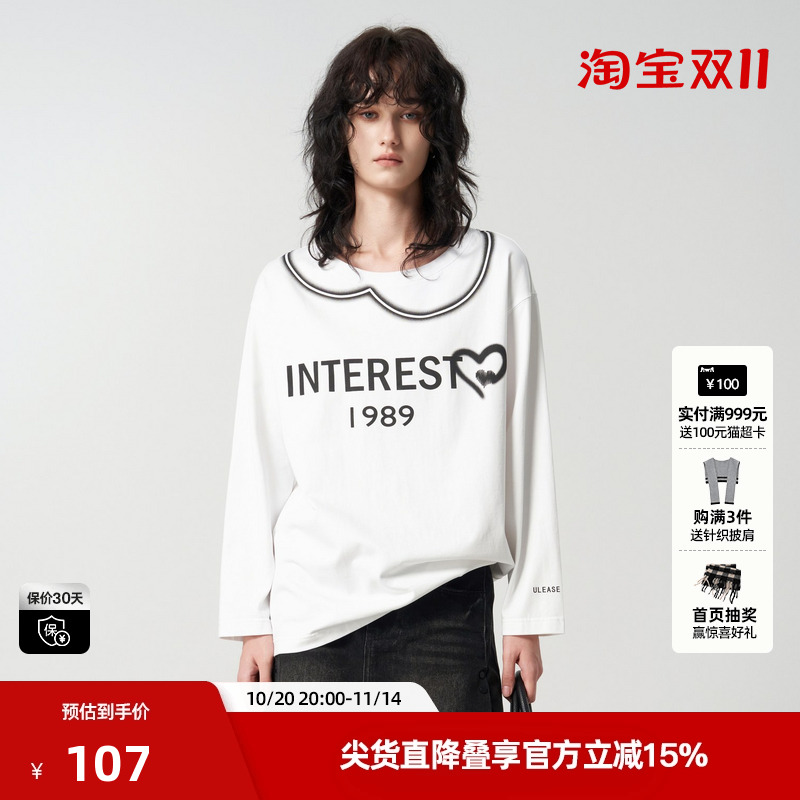 U/TI白色假海军领长袖T恤女 时尚学院风短袖上衣尤缇时尚秋季新款