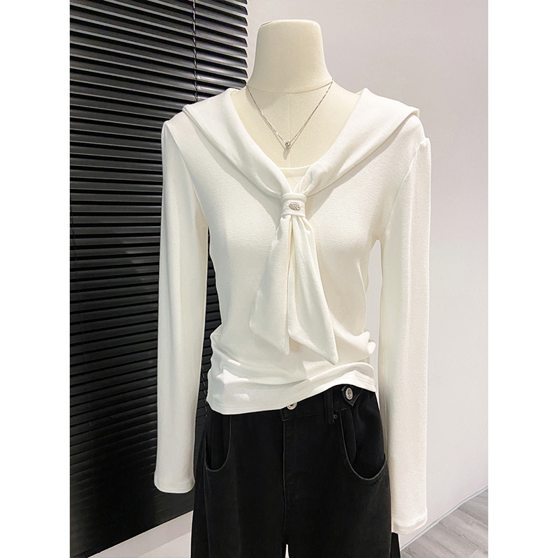 韩系学院风海军领长袖t恤女秋冬新款假两件披肩修身显瘦长袖上衣