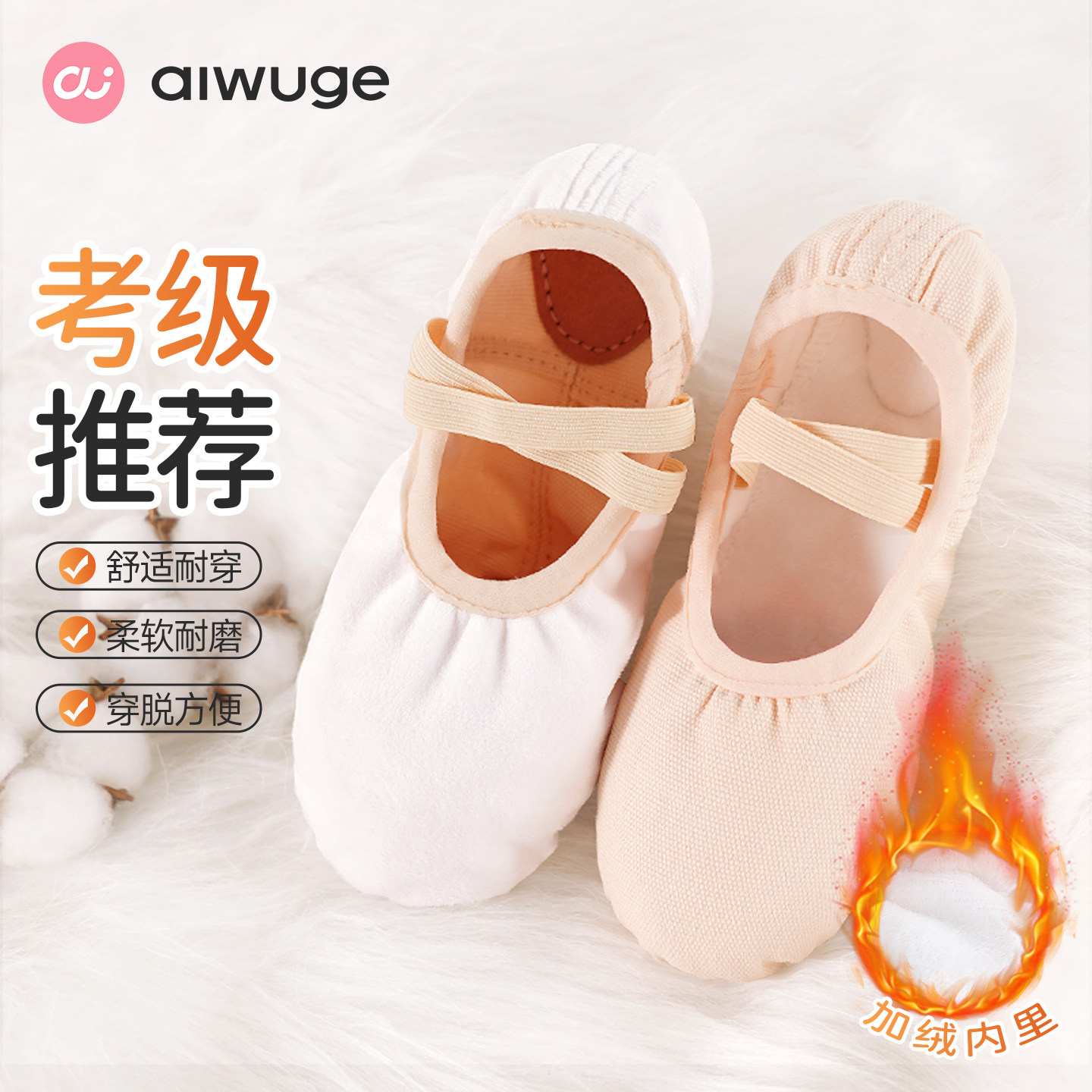 艾舞戈儿童舞蹈鞋秋冬季加绒中国舞练功鞋女童肉色跳舞专用软底鞋