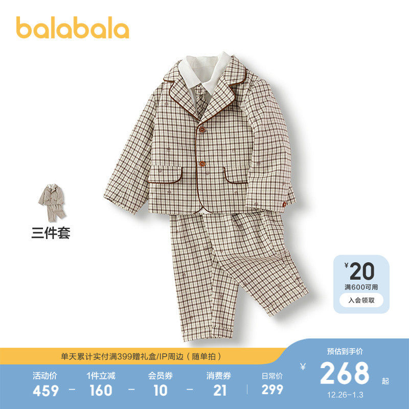【商场同款】巴拉巴拉宝宝套装男童西装三件套格纹2025新款秋装潮