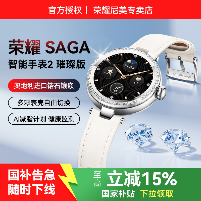 荣耀SAGA2智能手表璀璨版女士时尚款时尚腕表蓝牙连接血氧经期睡眠健康心率监测运动手表女性款官方旗舰正品