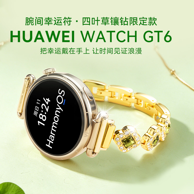 【四叶草镶钻限定款】华为手表WATCH GT6女款智能通话女性生理周期管理防水长续航送老婆送女友情人节礼物