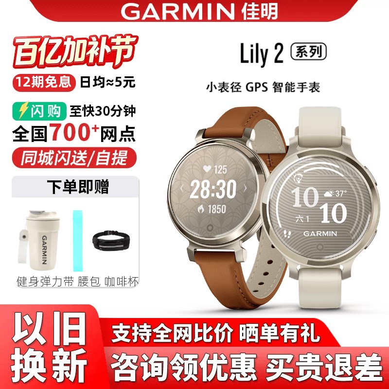 [补贴15%]Garmin佳明Lily2 Active心率血氧女性健康运动智能手表