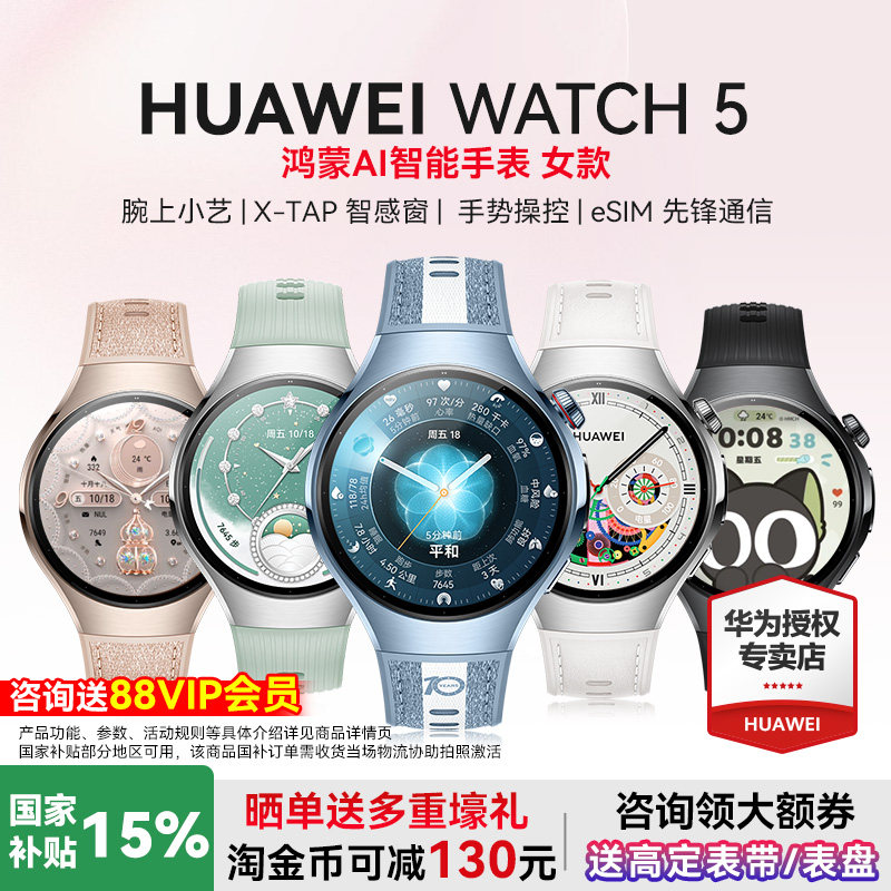 【政府补贴15%】华为WATCH 5智能手表esim独立通话女性健康管理高血糖风险评估ECG心电分析微体检送老婆女友