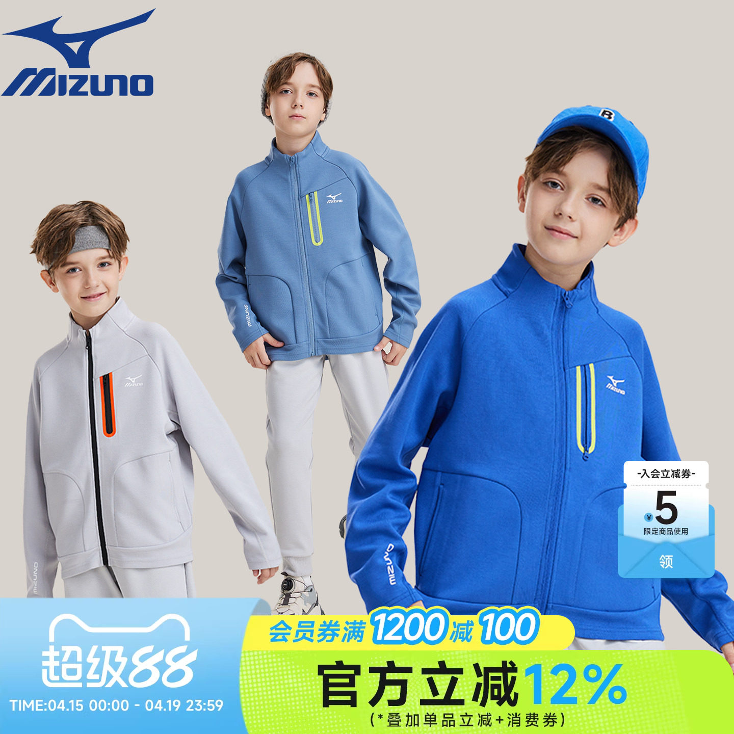 Mizuno美津浓儿童外套针织拉链2025秋冬新款夹克厚款时尚男童女童