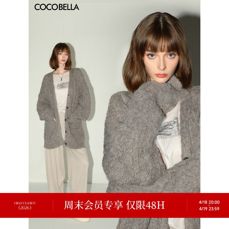 COCOBELLA绞花纹粗针花纱长款针织开衫女加厚保暖毛衣外套MZ0065