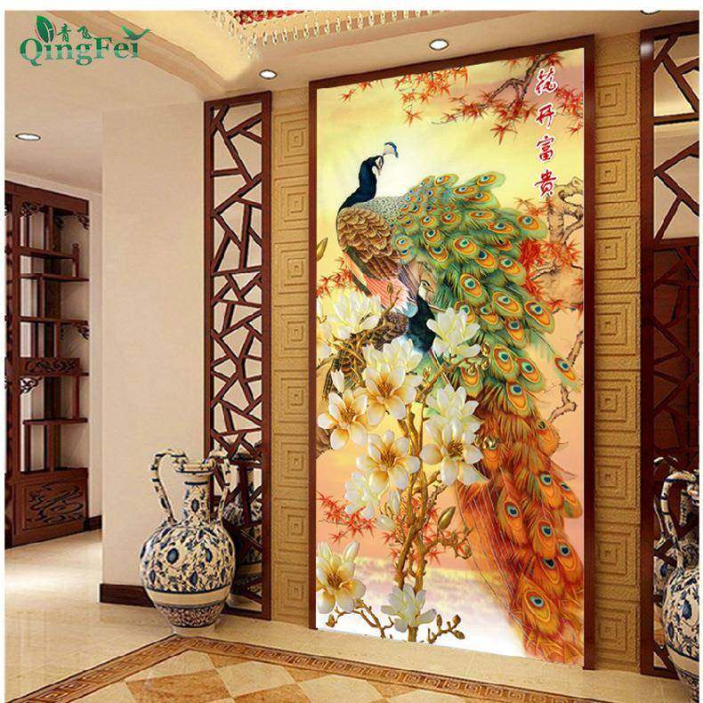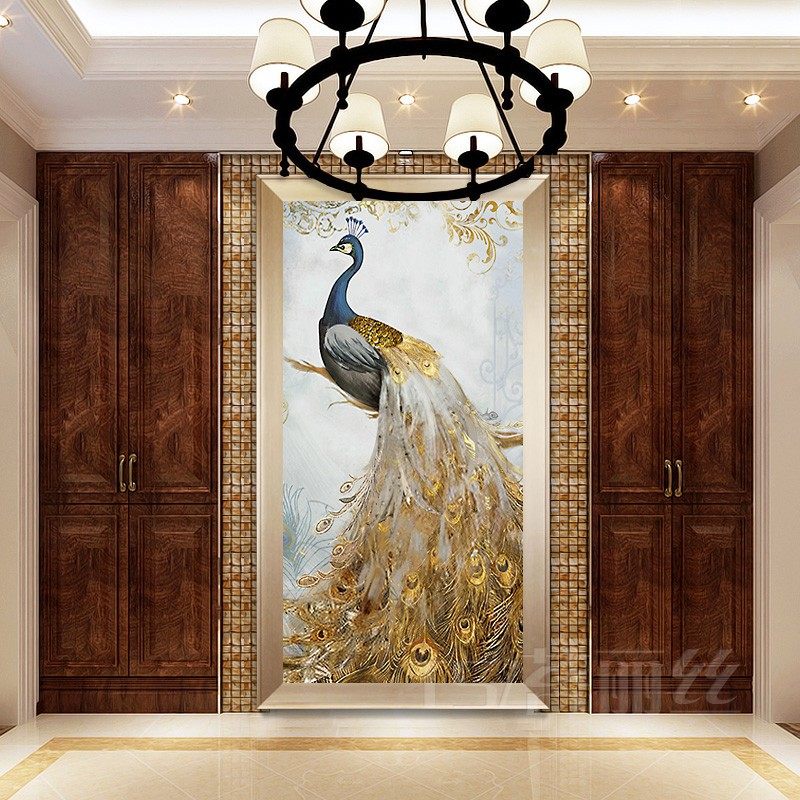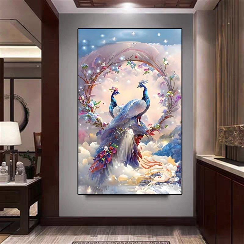 5d钻石画满钻新款现代客厅玄关竖版卧室欧式点钻十字绣孔雀钻石画
