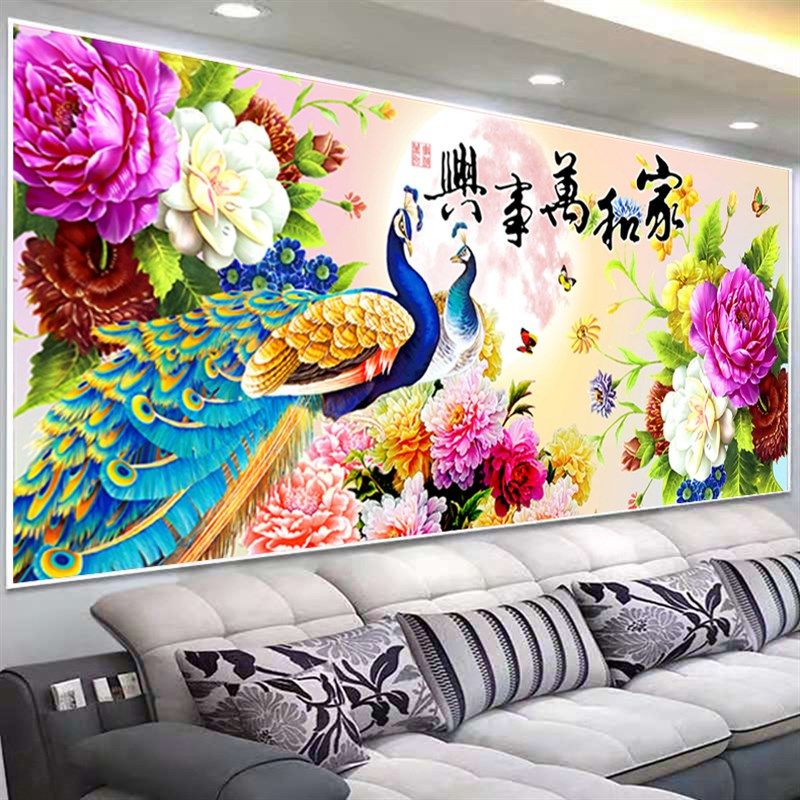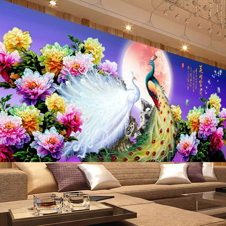新款5d钻石十字绣孔雀家和万事兴钻石画客厅卧室大幅挂画厂家批发