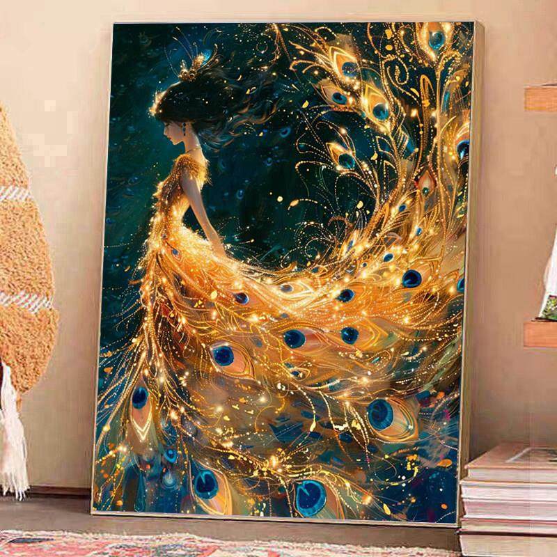 带框钻石画满钻AB彩钻卧室客厅粘钻十字绣孔雀公主女孩2024新款