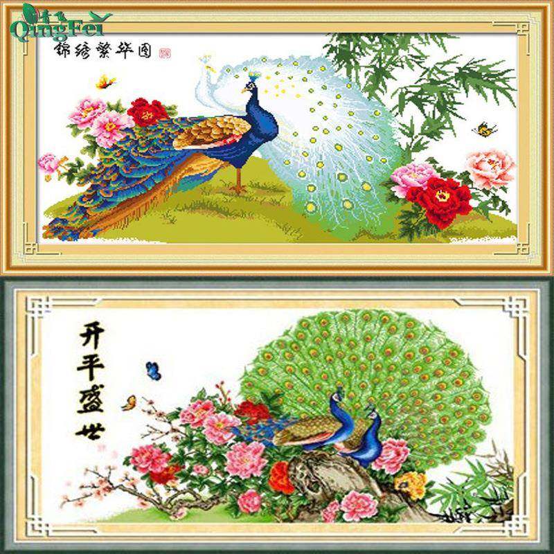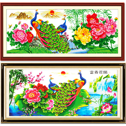 青飞精准印布爆款花开富贵孔雀十字绣孔雀牡丹十字绣客厅2米大画