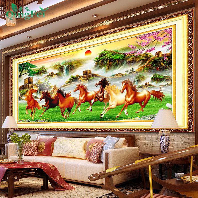 2026青飞精准印花马到成功壮丽山河十字绣孔雀花开富贵手工线绣越