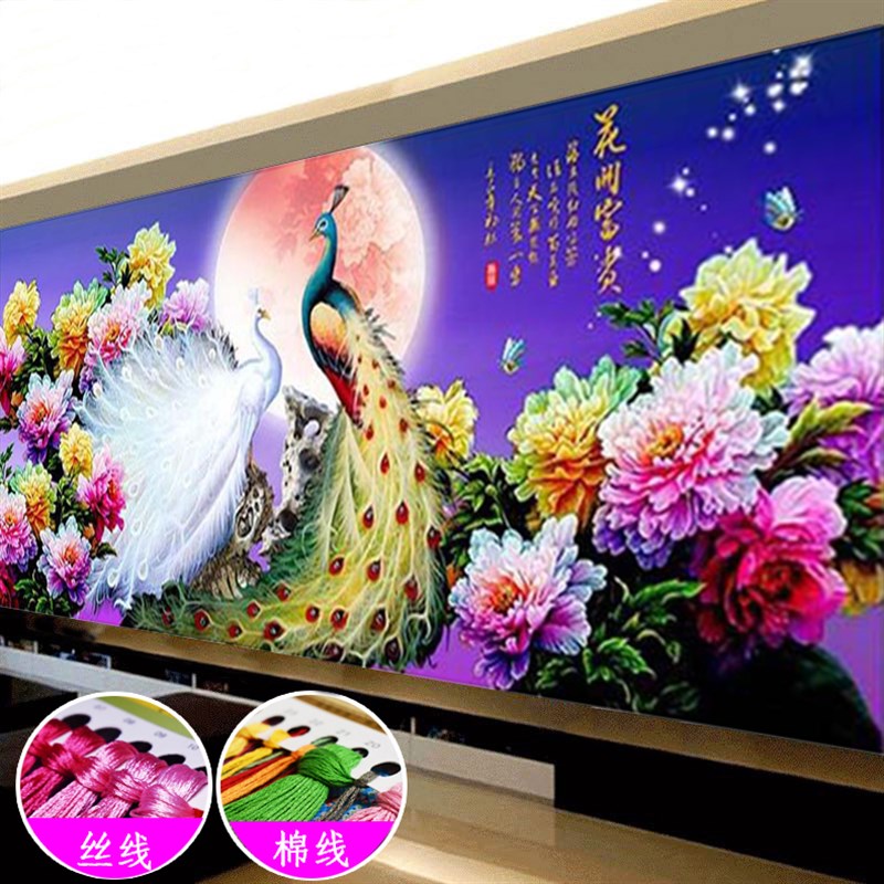 2024新款印花十字绣孔雀花开富贵牡丹图新版客厅十字绣大幅线绣