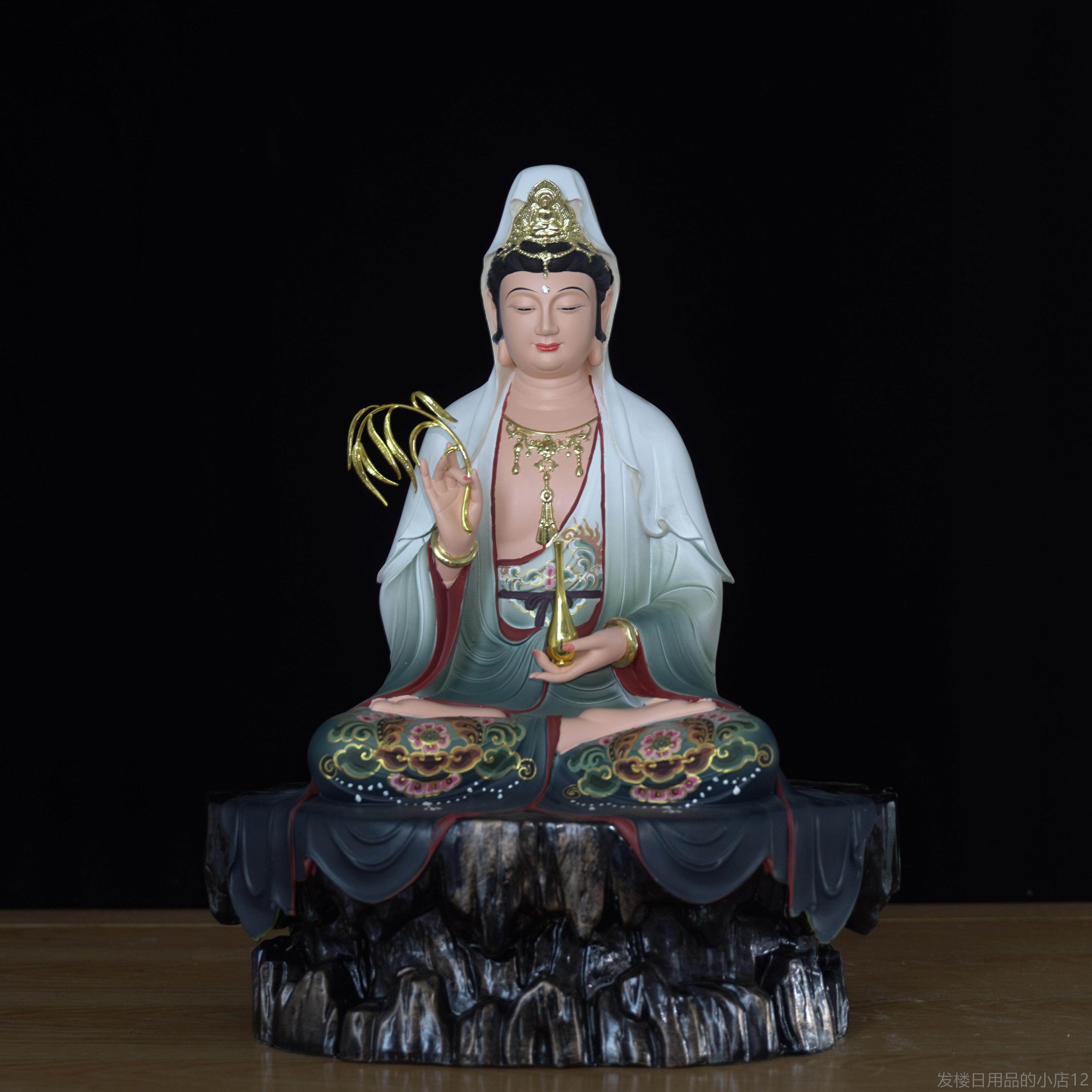 极速台湾彩绘纯铜观音佛像供奉家用观F音像观世音菩萨观音菩萨摆