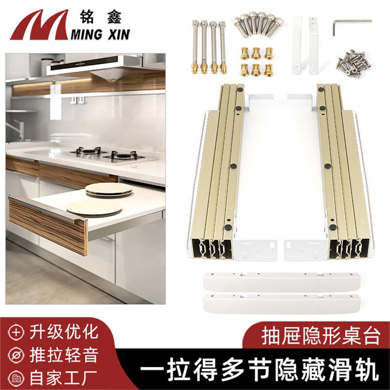 隐藏平推多节抽拉伸缩折叠导轨五金配件 多功能橱柜餐桌抽屉滑轨