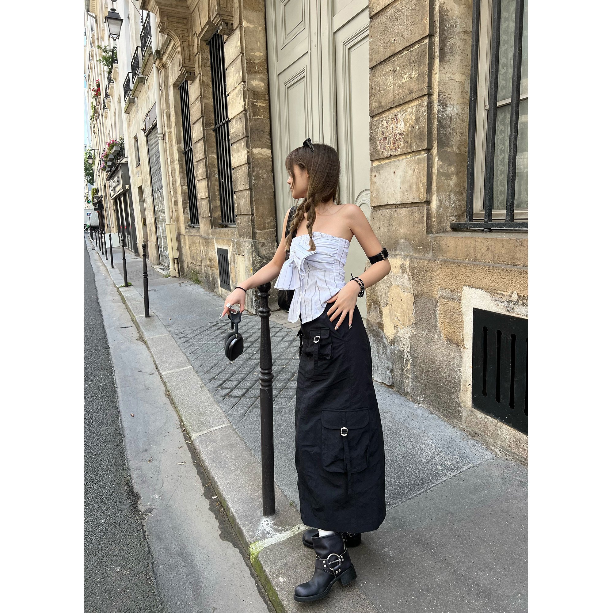 - 抹胸连衣裙 高腰