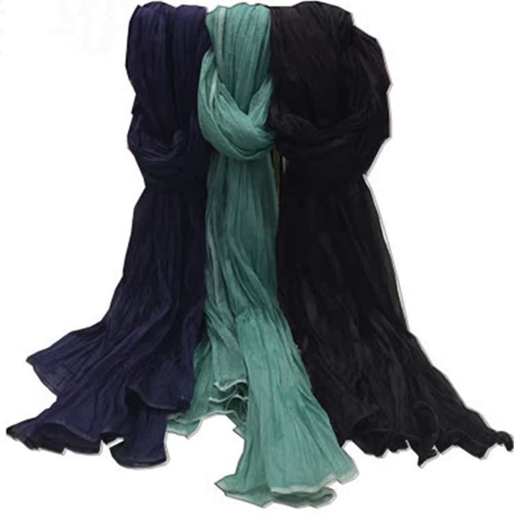 土豪金色纯色真丝皱长款真丝丝巾披肩女高档春秋夏季皱巾丝绸围巾