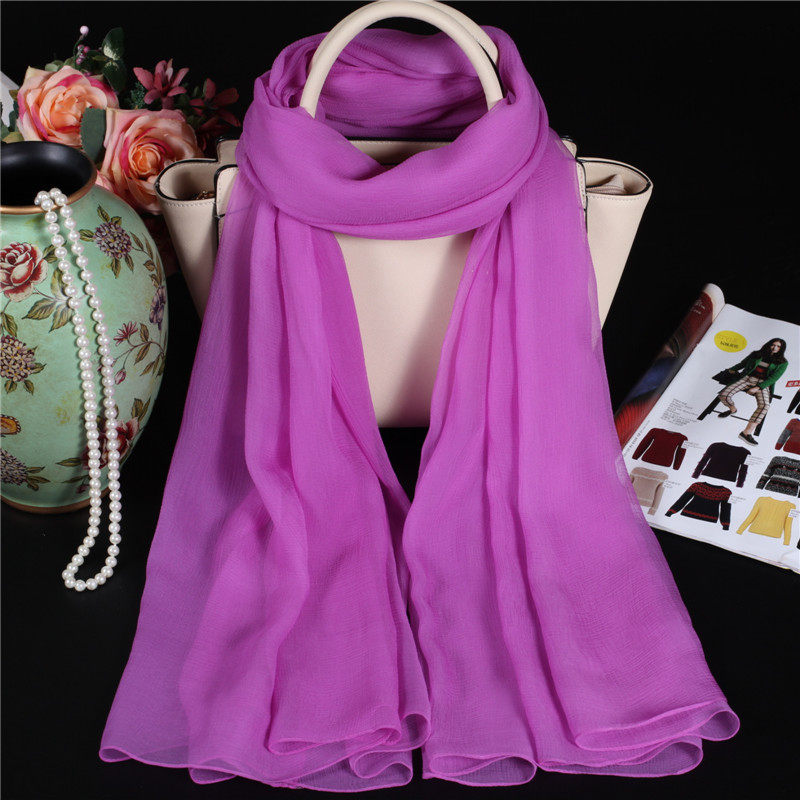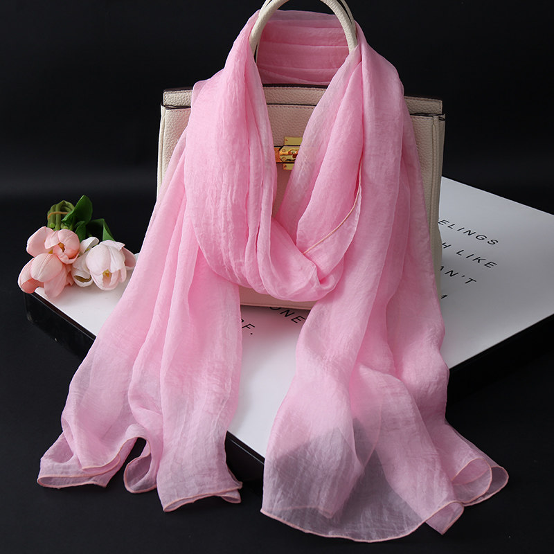 春秋防晒纱巾薄款丝巾蚕丝围巾长款真丝丝巾纯色春季护颈披肩女士
