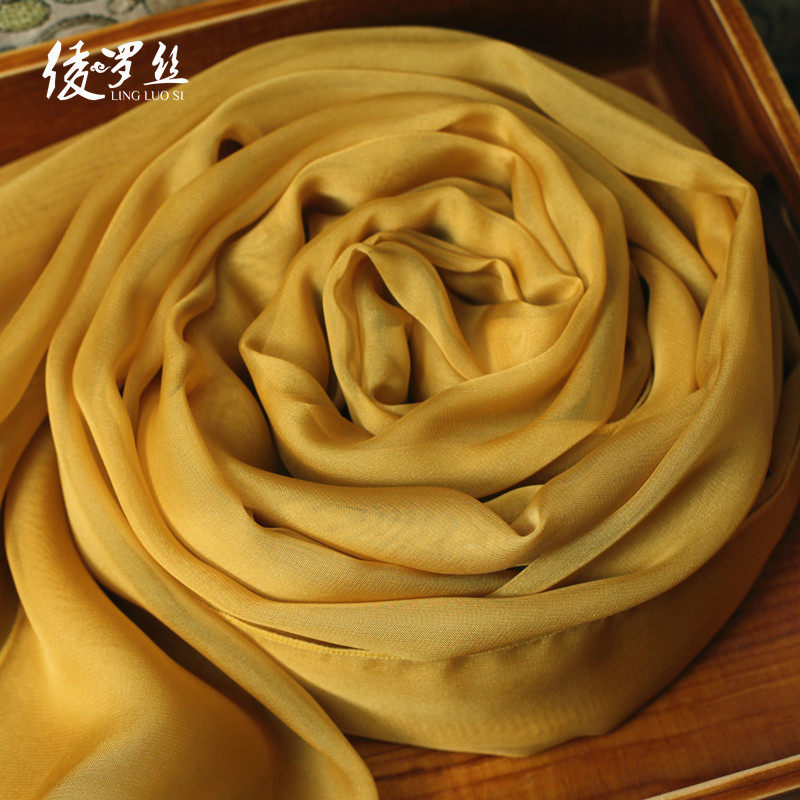 高档姜黄色桑蚕丝围巾女纯色百搭长款真丝丝巾披肩春秋冬防晒长巾