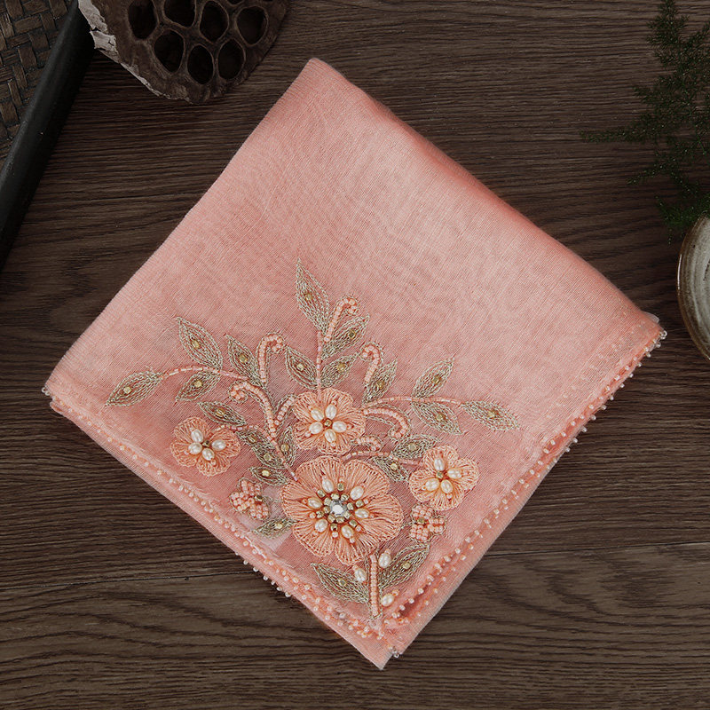 日系高档手工刺绣钉珠纯色羊毛真丝丝巾小方巾女小领巾百搭 送礼