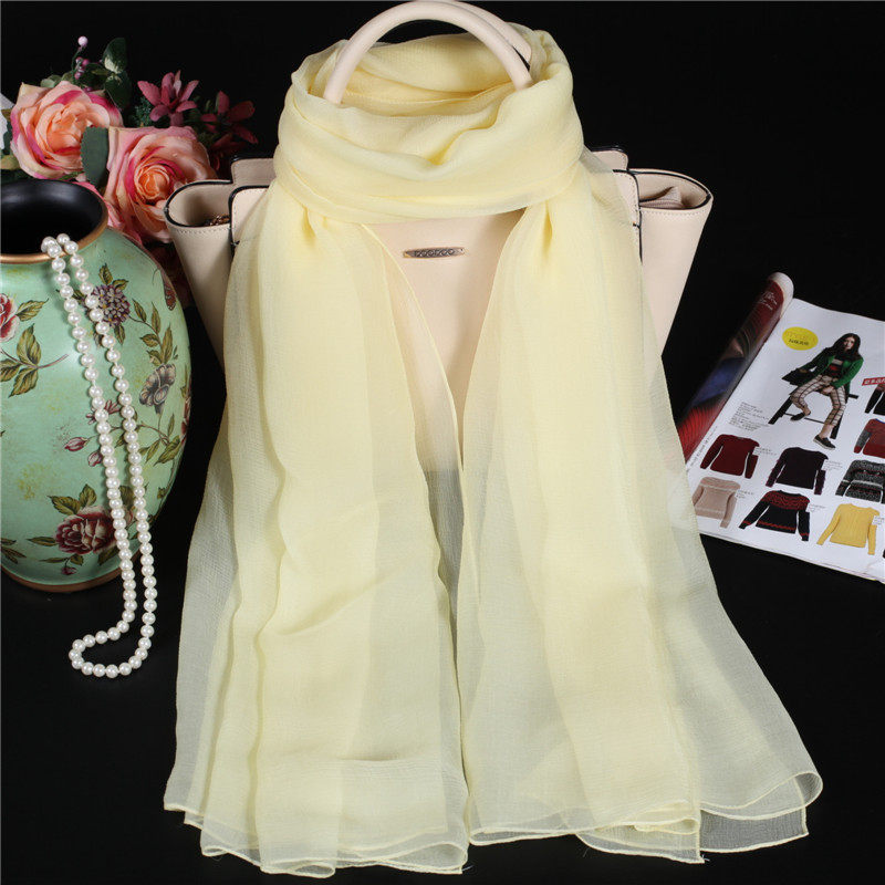 韩国新品真丝面料 很软很舒服100%桑蚕丝巾纯色围巾秋冬女浅黄色