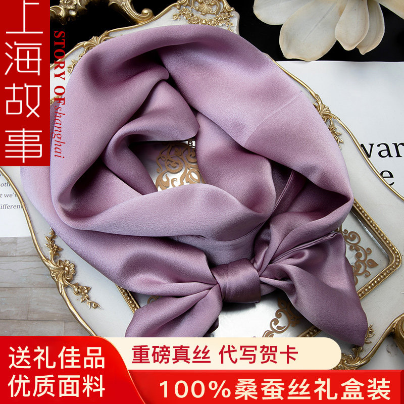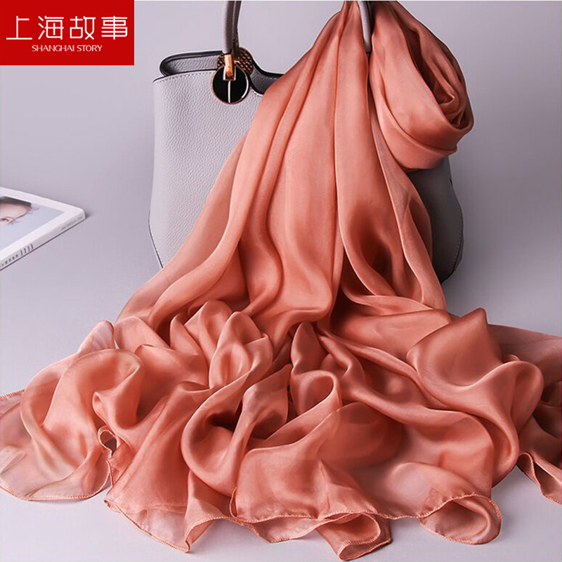 上海故事高档素纯色真丝丝巾女士百搭桑蚕丝围巾长款防晒披肩长巾