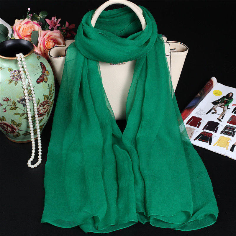 韩国新品真丝面料 很软很舒服100%桑蚕丝巾纯色围巾秋冬女翠绿色