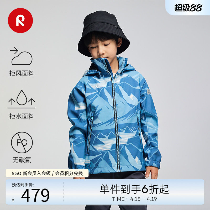 芬兰reima2025男女儿童中童拒风拒水抓绒保暖运动印花软壳夹克