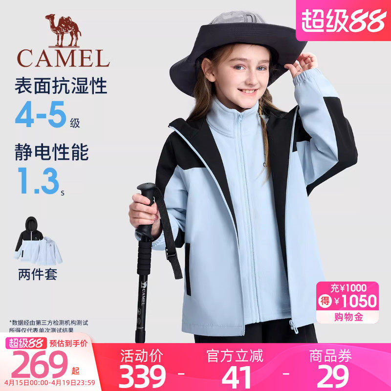 骆驼儿童外套女童春户外防风夹克防泼水软壳上衣男童摇粒绒两件套