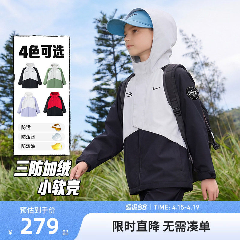 Nike 3brand童装儿童夹克男女童耐克防风外套26春季新款大童秋装