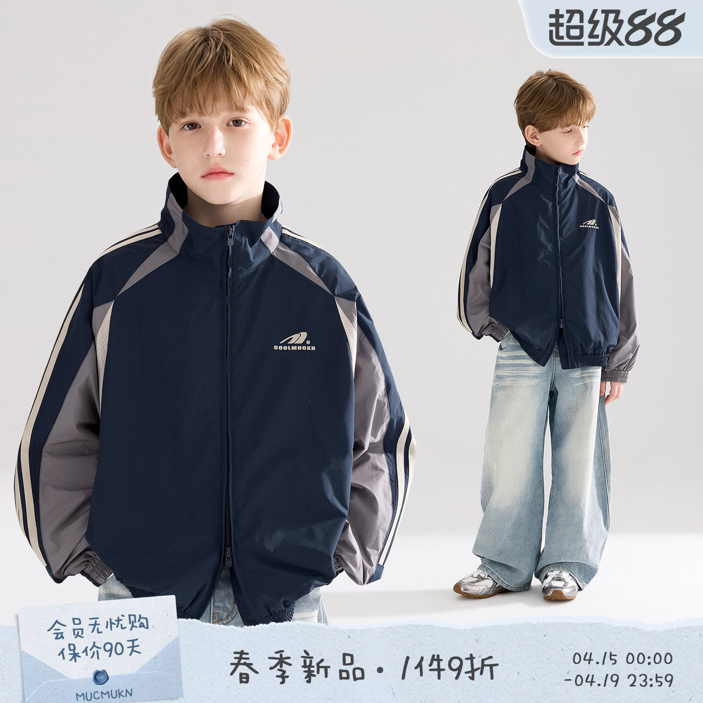 MUCMUKN【春训开场】轻量速干复古拼色运动夹克外套男童26春新