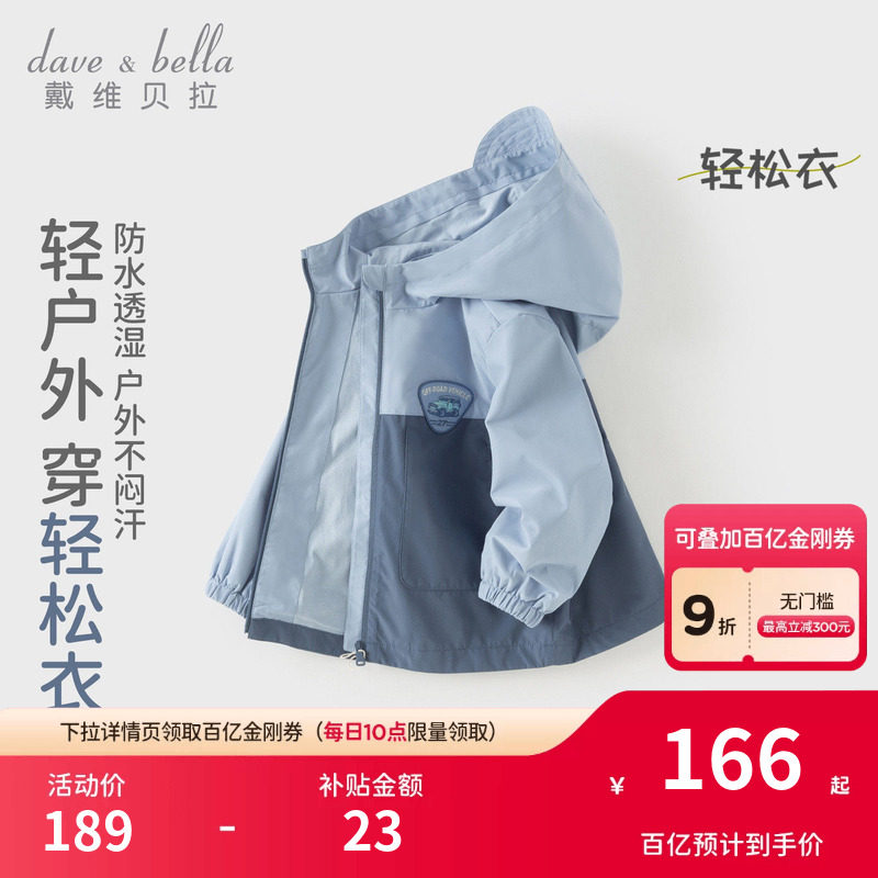 戴维贝拉男童外套春季新款儿童户外防水风衣男宝宝夹克户外服童装