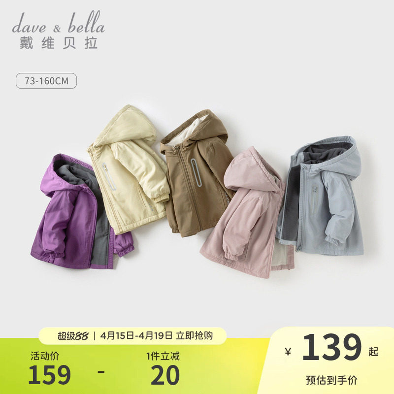 戴维贝拉儿童风衣外套春装男童户外防风夹克女童加绒衣服宝宝童装
