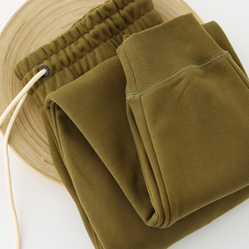 470G抹茶绿重磅棉宽松收脚卫裤女秋冬加厚绒运动束脚收口男长裤