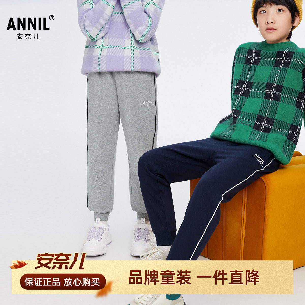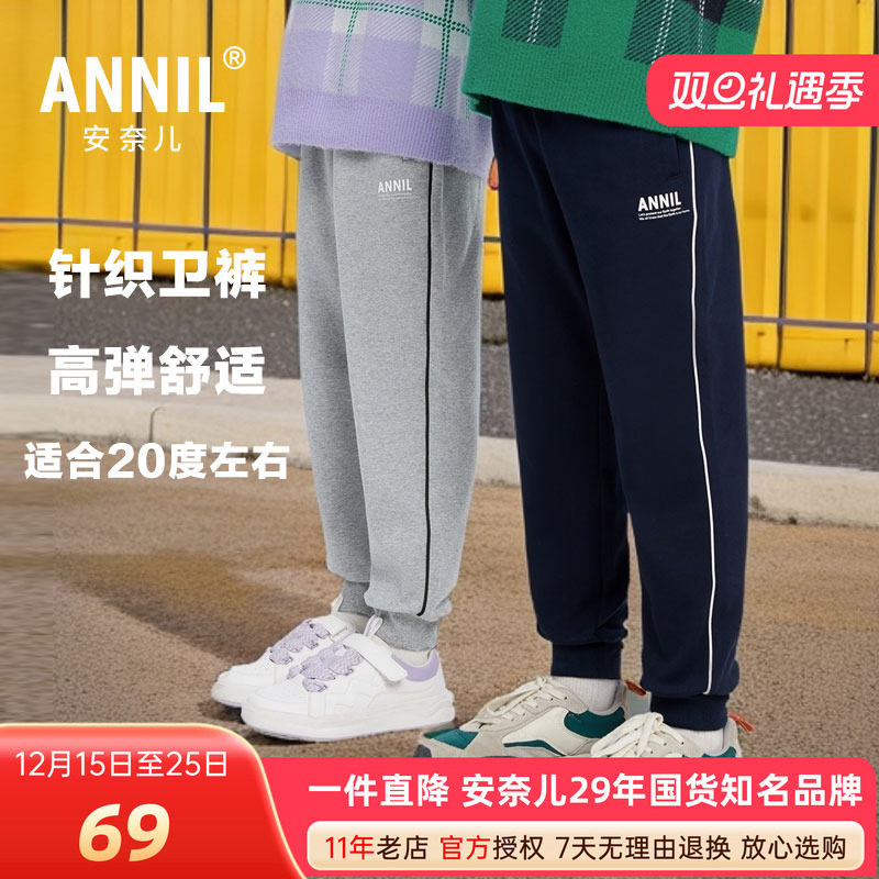安奈儿男女童装针织运动卫裤2025秋冬学生休闲收脚弹力宽松长裤子