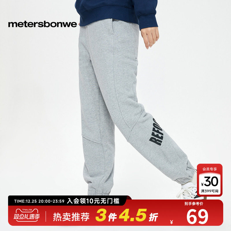 美特斯邦威卫裤女秋冬宽松休闲运动潮流百搭裤子收脚拼接针织长裤