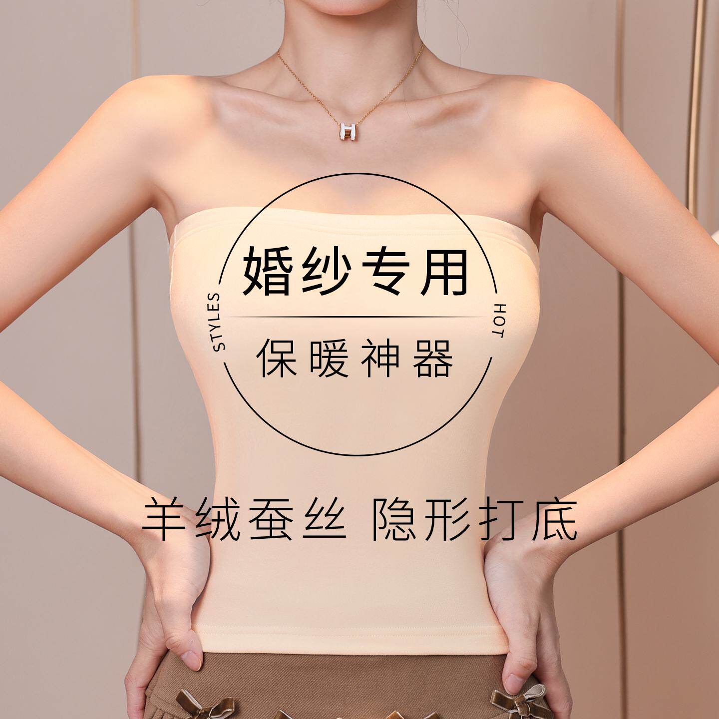 隐形保暖神器肤色抹胸新娘结婚裹胸婚纱专用无肩带内衣加绒内搭冬