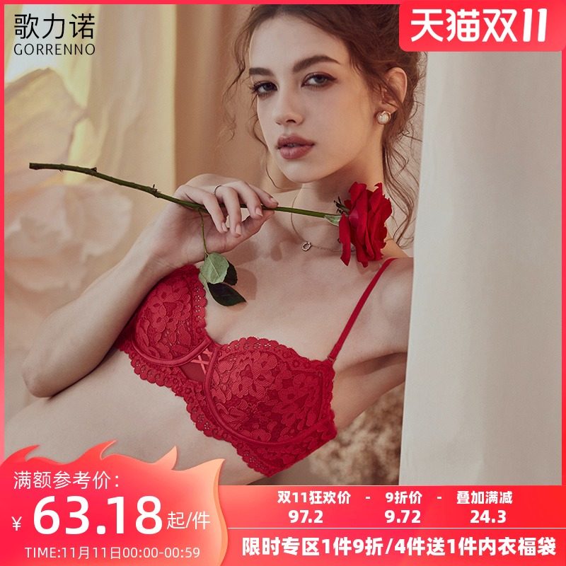 歌瑞尔蕾丝美背内衣女交叉细肩带红色结婚新娘文胸套装法式无钢圈