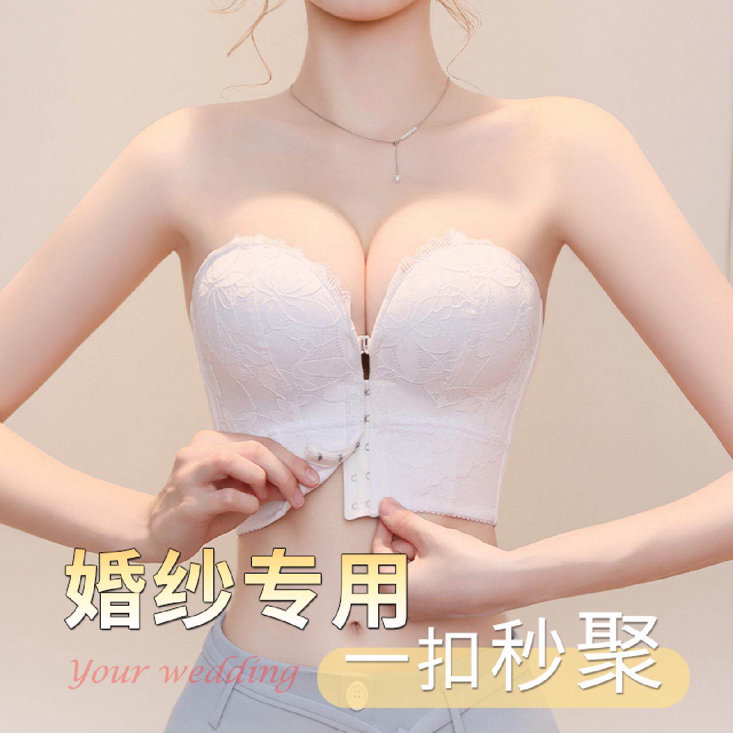 深V新娘婚纱前扣无肩带内衣女防滑隐形无痕小胸聚拢显大文胸抹胸